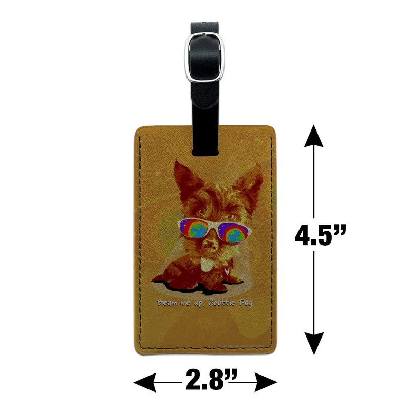 Beam Me Up Scottie Dog Suglasses Retro Rectangle Leather Luggage Card ID Tag