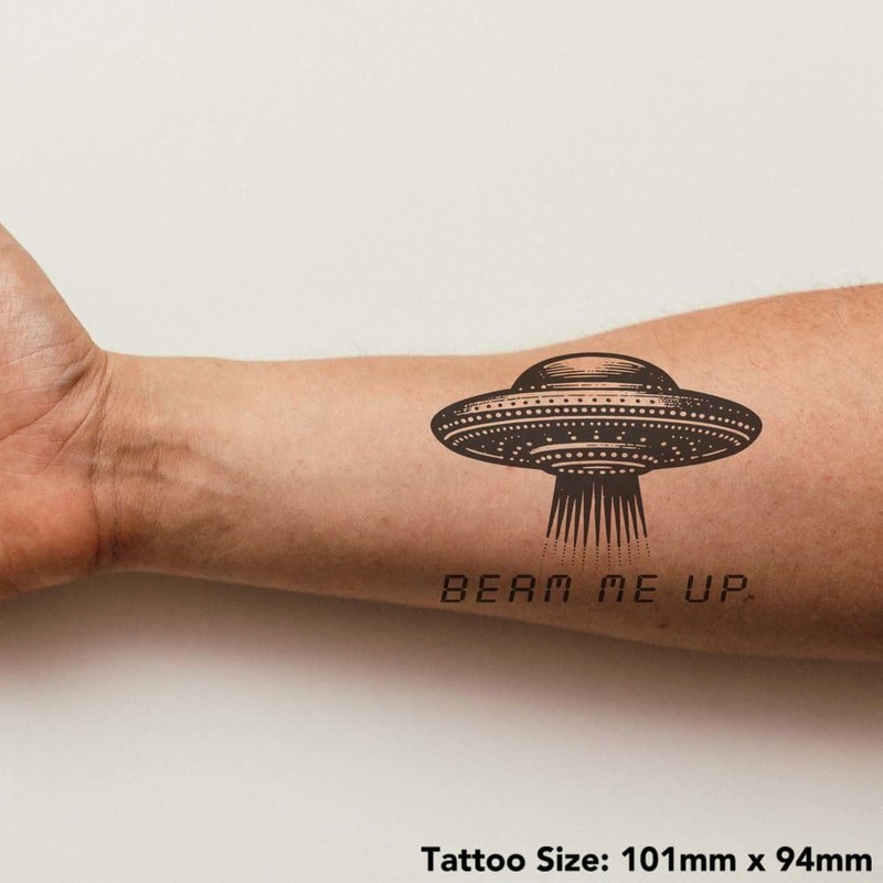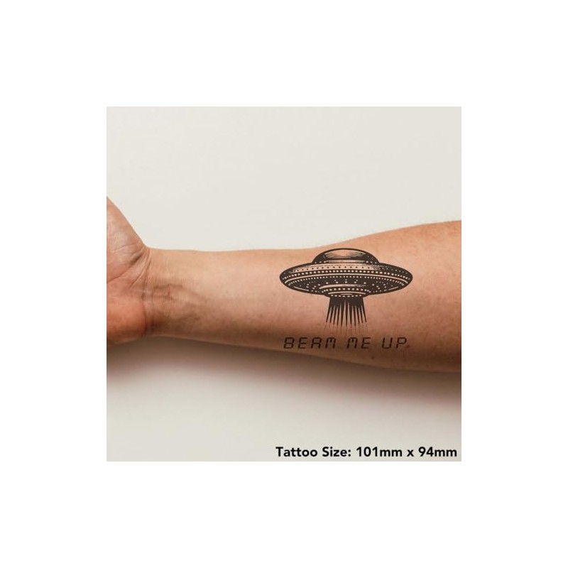'Beam Me Up UFO' Temporary Tattoo - Water Resistant, Skin-Safe, Non-Toxic Transfer (TO00075743)