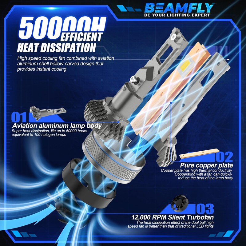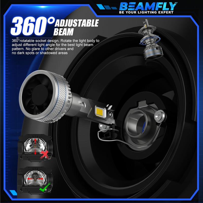 • 【Optimal Beam Pattern】BEAMFLY h7 LED Bulb adopts 360 degree adjustable mounting collar, can be avoid ghosting for geting a perfect beam pattern. This h7 LED headlight give you perfect focused light beam, No dark spots or shadowed areas, No blinding other driver, ensuring Night safe.