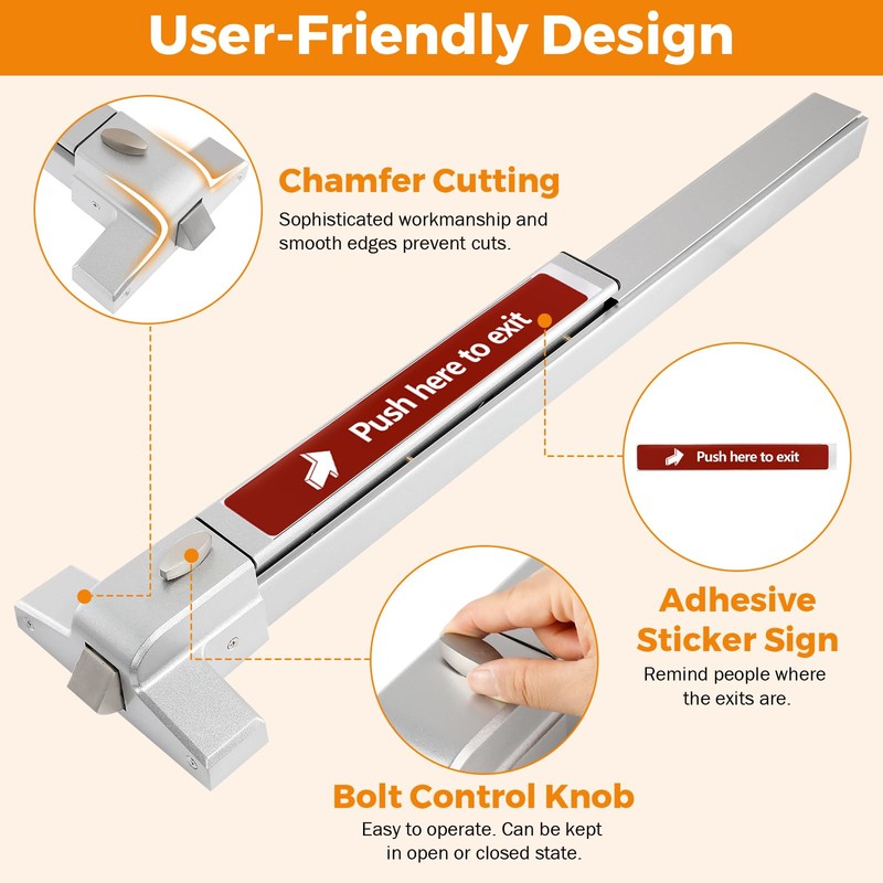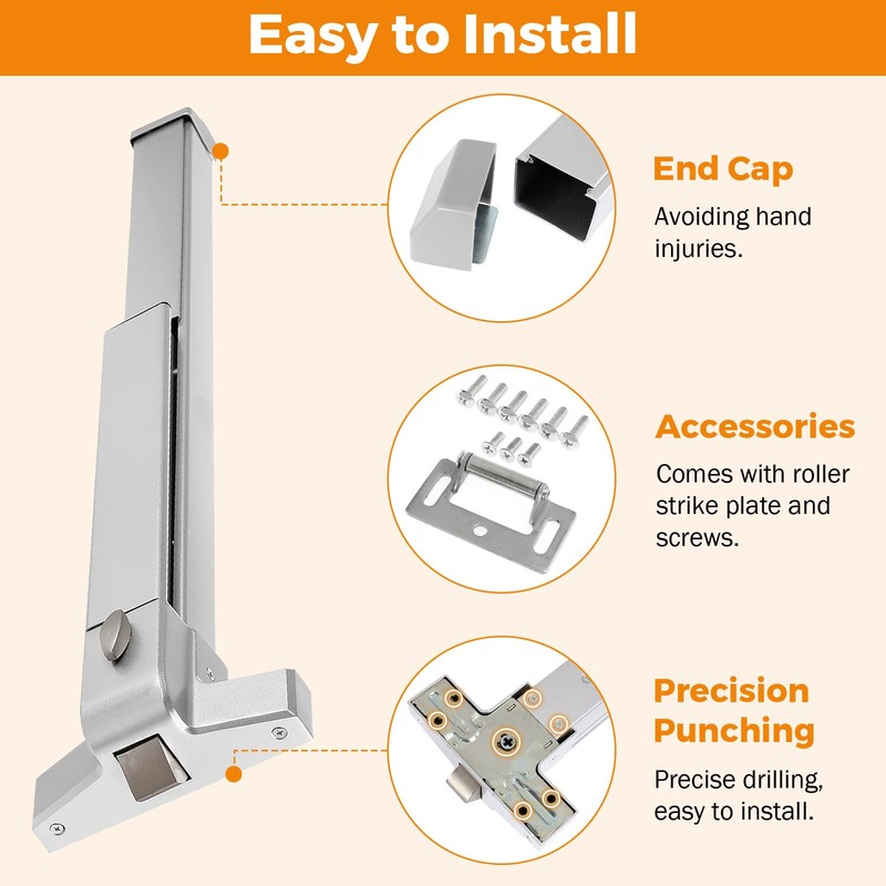 • **Easy Installation**: Installation is straightforward with detailed instructions. BEAMNOVA door push bar is pre-drilled and comes with all necessary accessories. The enlarged head cover design makes installation even more convenient.