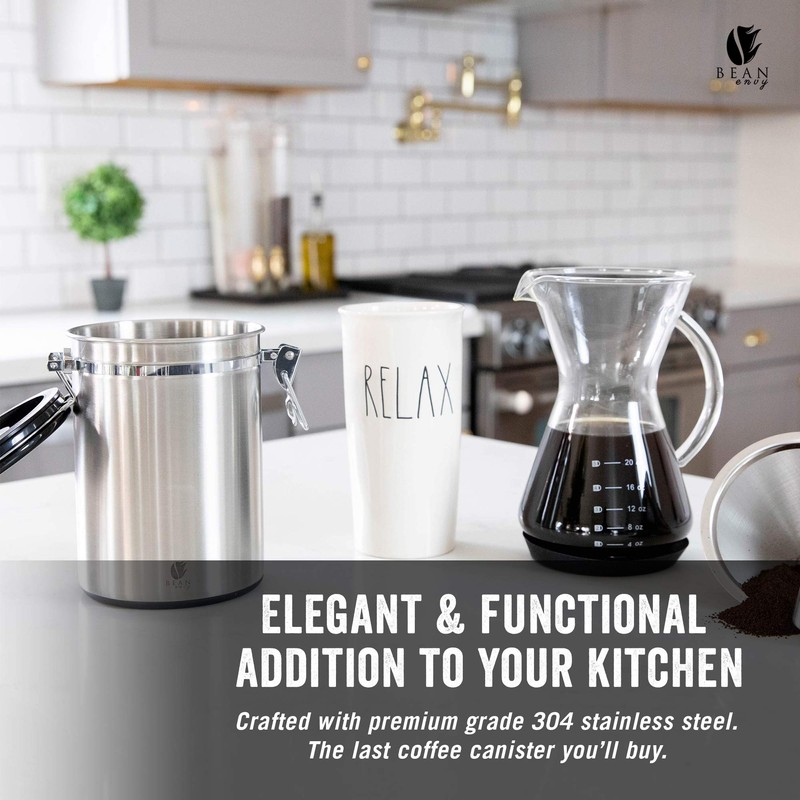 - DECORATIVE: The perfect balance between function and beauty, our elegant coffee jar complements any kitchen counter and is as durable as it is decorative.
