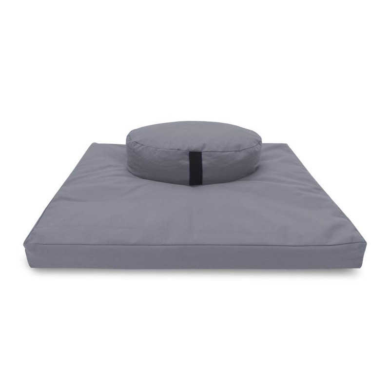 Bean Products Zafu & Zabuton Meditation Cushion, Round, Cotton Stone Gray - Filled with Natural Cotton & Buckwheat