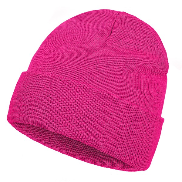 Beanie for Men Women, Slouchy Knitted Beanie Hats Winter Warm Hat Unisex Cuffed Plain Hat for Cold Weather, Rosy Red, One Size