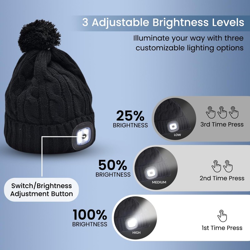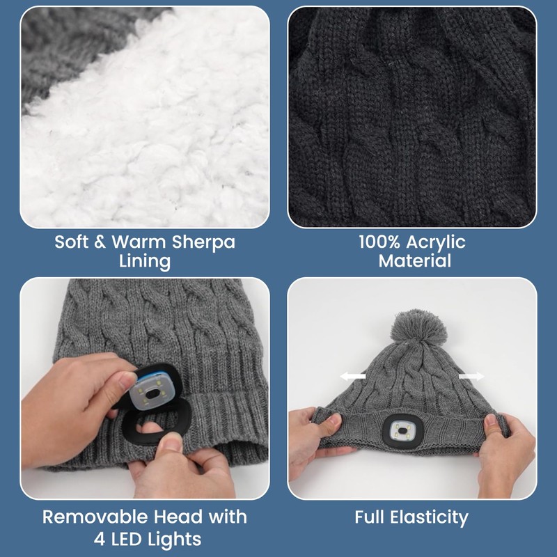 - Elastic & Universal Size:With high elastic and comfort, these winter warmer LED knit hats can fit a wide variety of head sizes for most kids, men, and women.