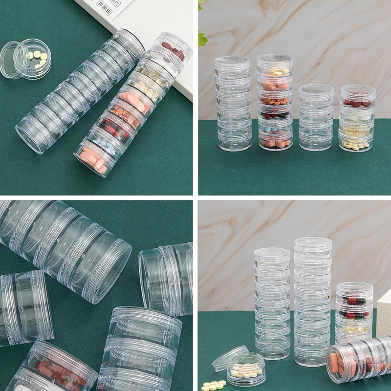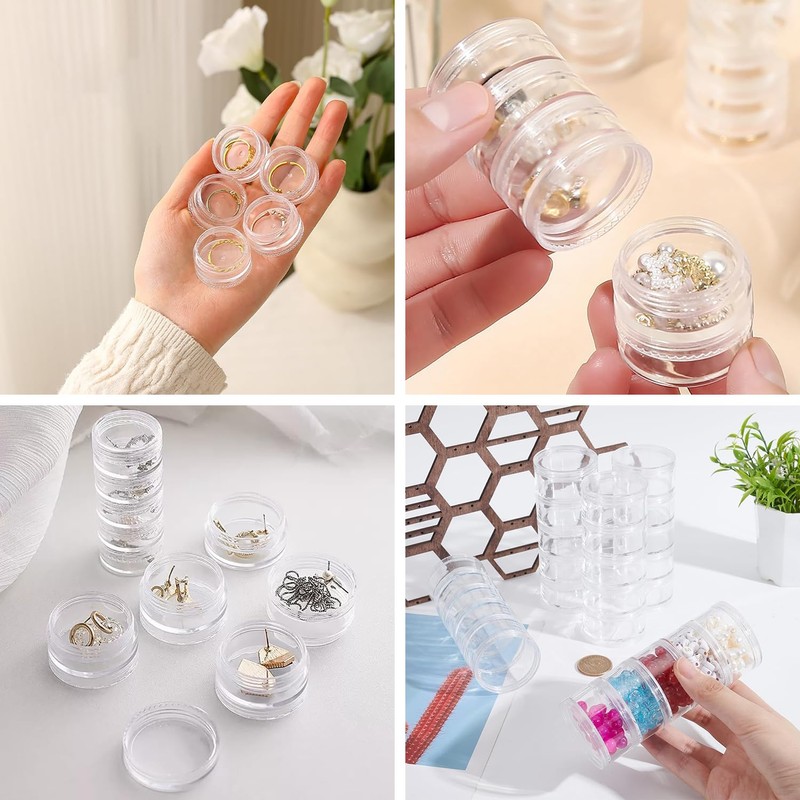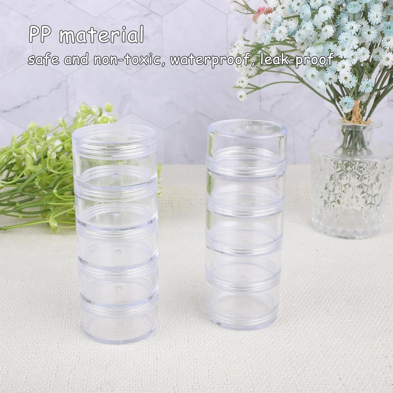 BEANPRECOY 5 Set 7 Layer Stackable Round Plastic Containers, Stackable Cosmetic Jars, Pill Box, Clear Plastic Round Storage Jars with Screw Cap Lid for Beads, Buttons, Small Jewelry Findings