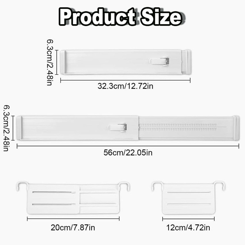 - 【Adjustable & Expandable Drawer Dividers】: With adjustable length (32.3-56 cm) and 6.3 cm height, these drawer organizers fit most drawers/cabinets perfectly, Customize compartments for kitchen utensils, socks, office supplies, or cosmetics with effortless flexibility.