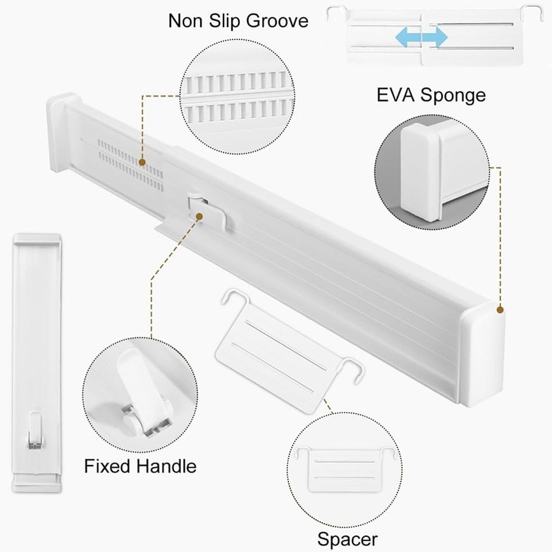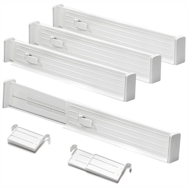 BEANPRECOY Expandable Drawer Dividers Organizer Set of 4 (32-56cm) with 2 Inserts Adjustable for Kitchen Utensils Clothing & Office Storage Multi Purpose Drawer Organizer for Home & Bedroom White