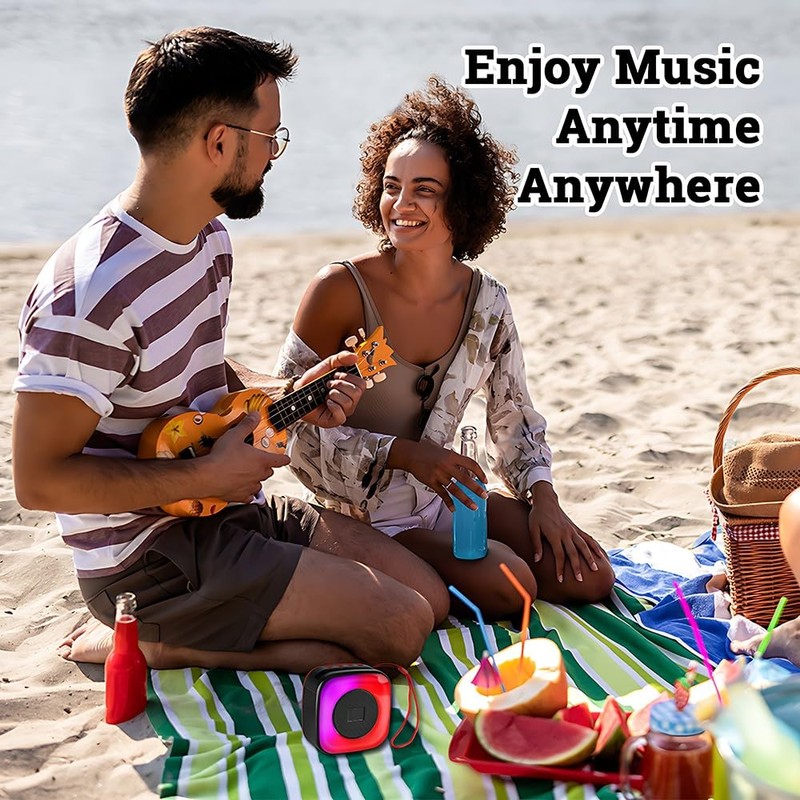 - Dynamic RGB Lighting: The small bluetooth speaker enhances any event by creating a vibrant and immersive atmosphere with its RGB lights that sync to the music