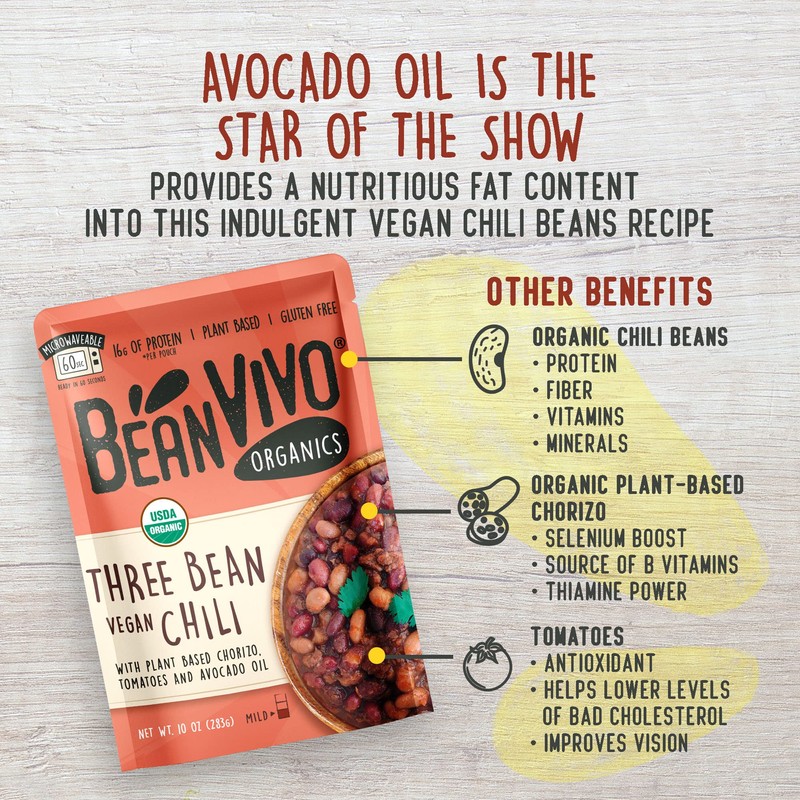 Three Bean Vegan ChiliEnjoy “bean” alive with BeanVIVO Organics. Try our ready-to-eat Three Bean Vegan Chili today!