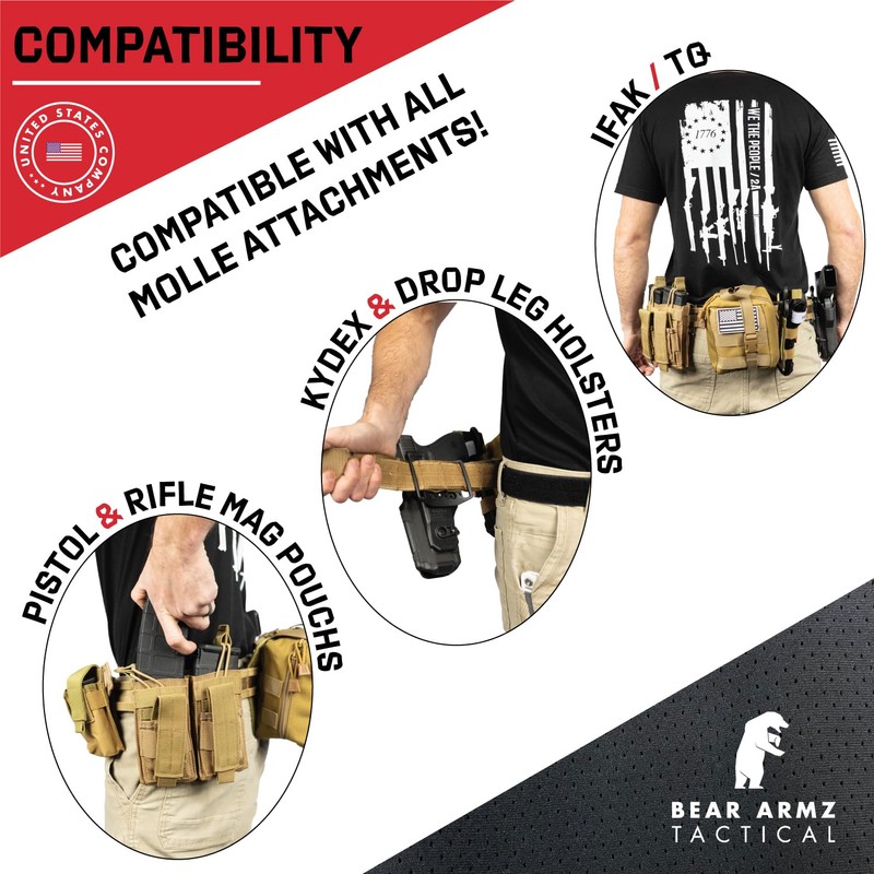 ✔ THE QUALITY: Bear Armz Tactical's Battle Belts are made with HEAVY DUTY INDUSTRIAL GRADE 1000D PVC NYLON MATERIAL! They are super durable and dependable. At Bear Armz Tactical we only sell products that we use and love ourselves.