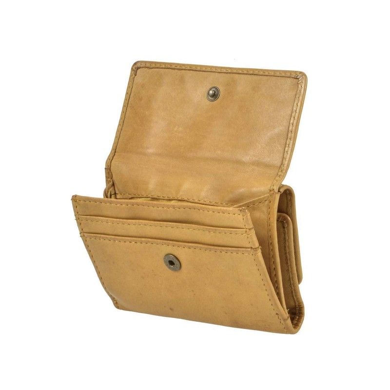 Bear Design Leather Mini Wallet 10 x 7.5 cm Ochre Yellow, yellow