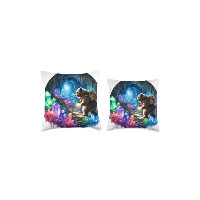 Bear Exploring A Cave With Shining Crystals. Backpack Throw Pillow