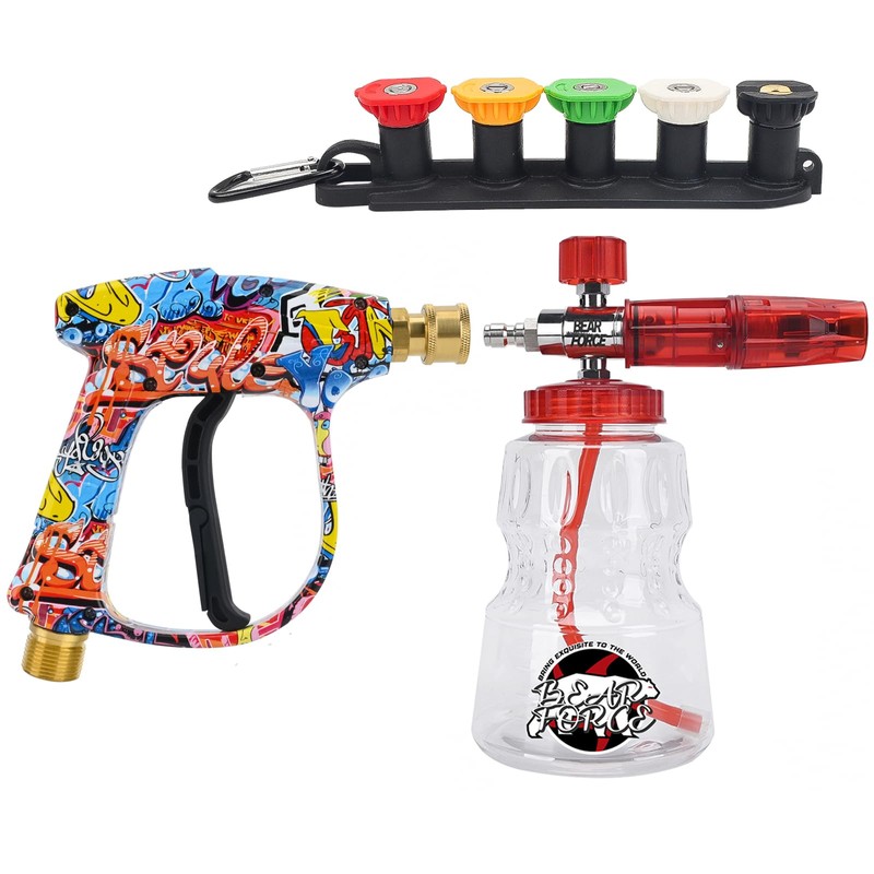 Bear Force Pressure Washer Water Gun M22-ID14mm and 1/4" Quick Release Snow Foam Cannon 1L Bottle Perfect for Car Wash and Patio Cleaning Car Cleaning