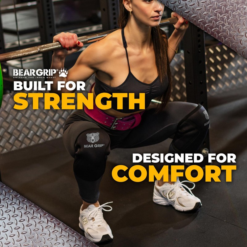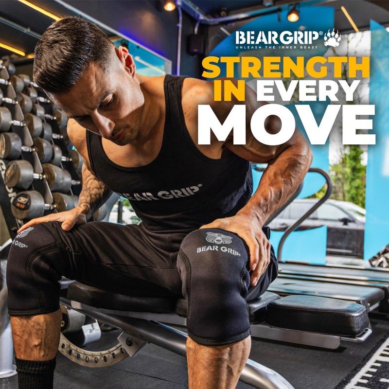 BEAR GRIP 7mm Knee Sleeves (Pair) for Weightlifting and Squats - S