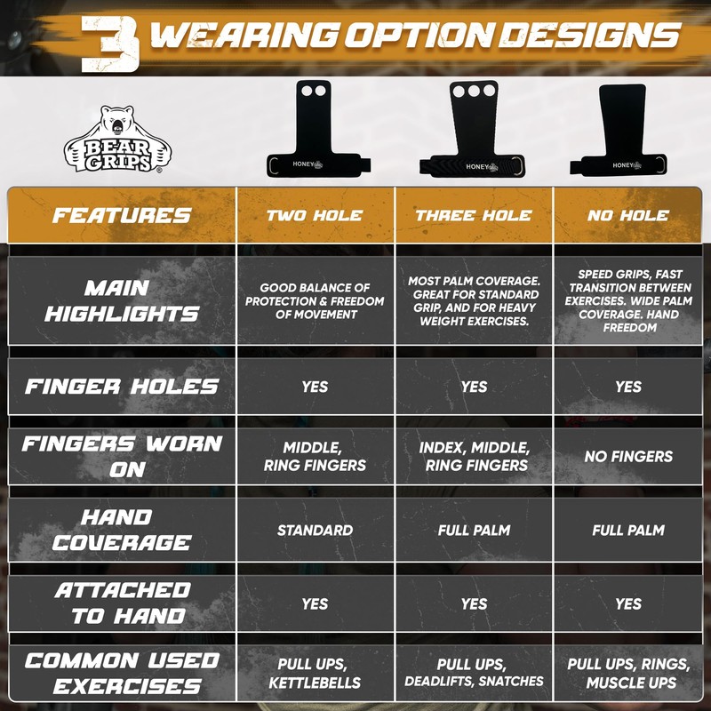Bear Grips Two Hole Hand Grips, Three Hole Pull Up Grips, No Hole Wrist Grips, WOD Grips for Men and Women. Carbon Fiber Hands Grips, Titanium Hand Grips for Weight Lifting, Speed Pull Up Gloves Grip