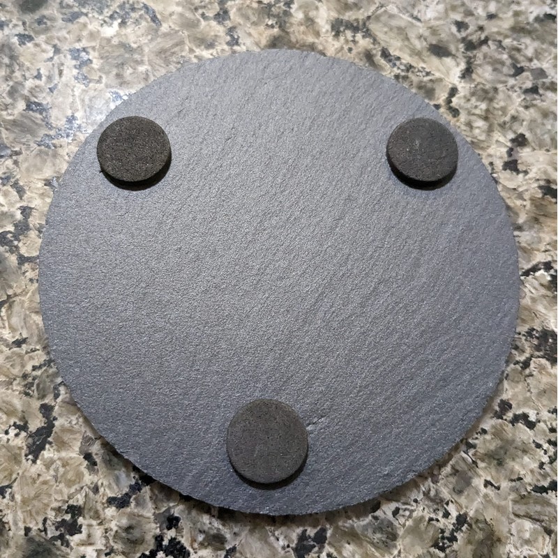 - The slate varies from 3/16" to 1/4" thick, is approximately 4" diameter, and has a natural chipped edge.