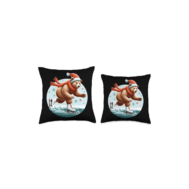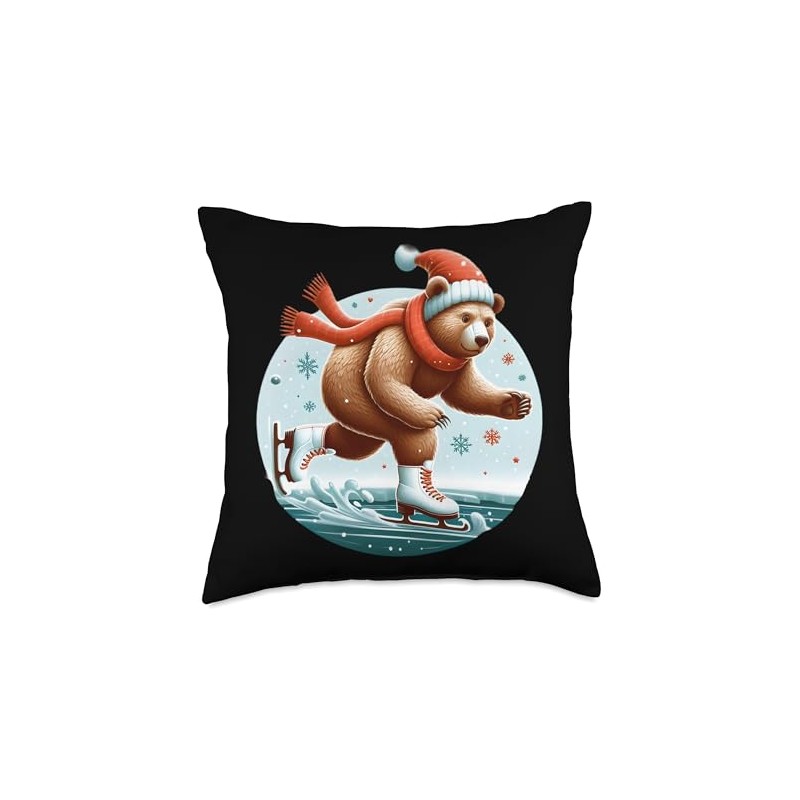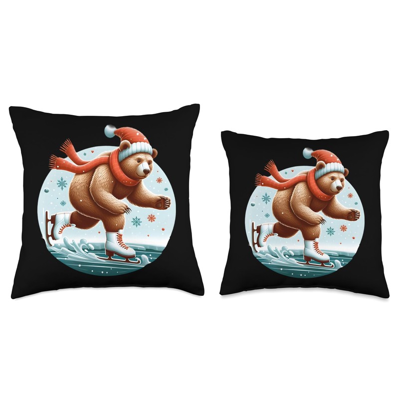 Bear Ice Skating Wearing Ski Goggles Bear Ice Skating Throw Pillow, 18x18, Multicolor