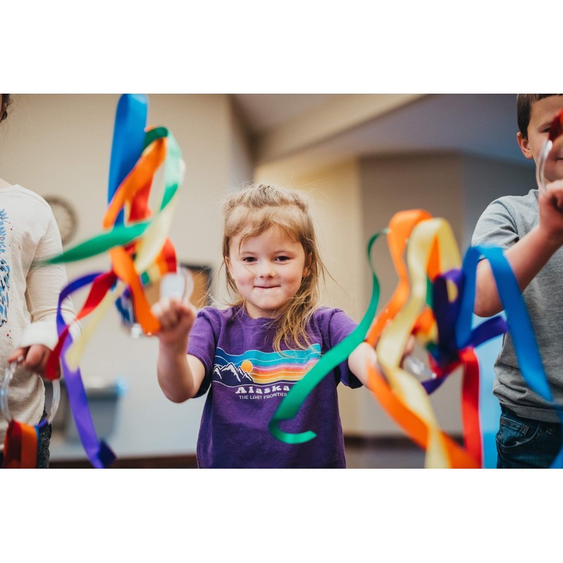 - Beautiful ribbons cascade off of 4 inch wide plastic hoop, perfect for hands to grab on to.