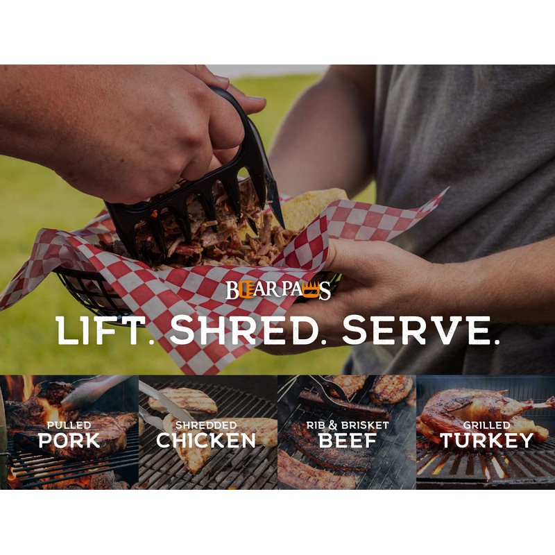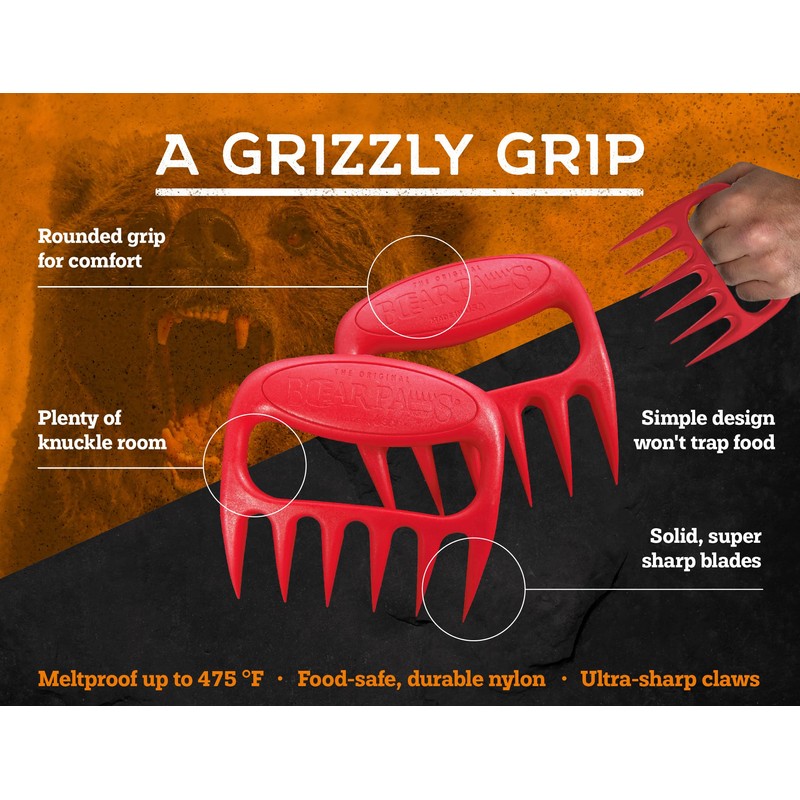- TIME SAVER - Bear Paws are the answer to perfectly shredded meat without the mess and headache of knives and forks. Easily grasp and shred pork, chicken, beef, and more with the ultra-sharp claws.