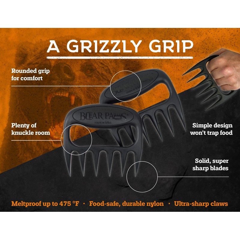- TIME SAVER - Bear Paws are the answer to perfectly shredded meat without the mess and headache of knives and forks. Easily grasp and shred pork, chicken, beef, and more with the ultra-sharp claws.
