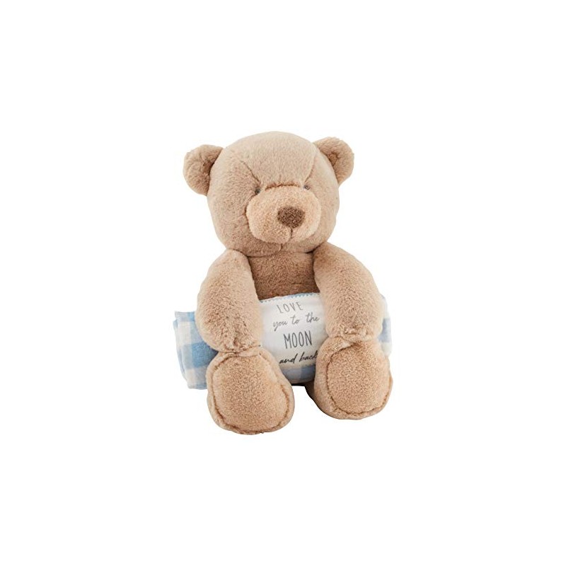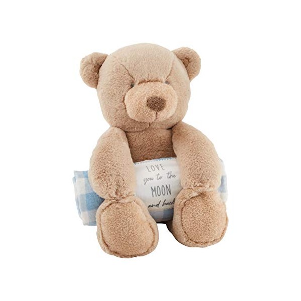 - 2-piece set. Faux fur plush with embroidered facial features arrives with rolled fleece blanket with minky sentiment tag.