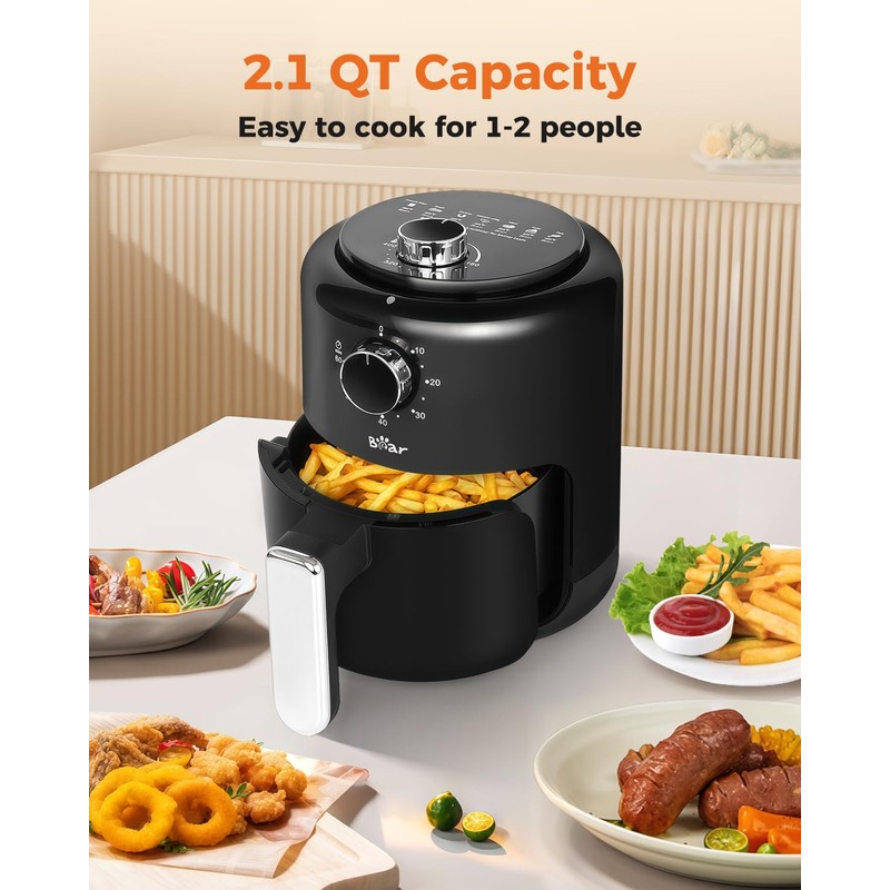 Bear Small Air Fryer 2.1 QT, Mini Airfryer Adjustable Time&Temp Control, Ideal for 1-2 People Quick Healthy Meals Snack in Minutes, Compact Size Space-Saving with Nonstick Basket