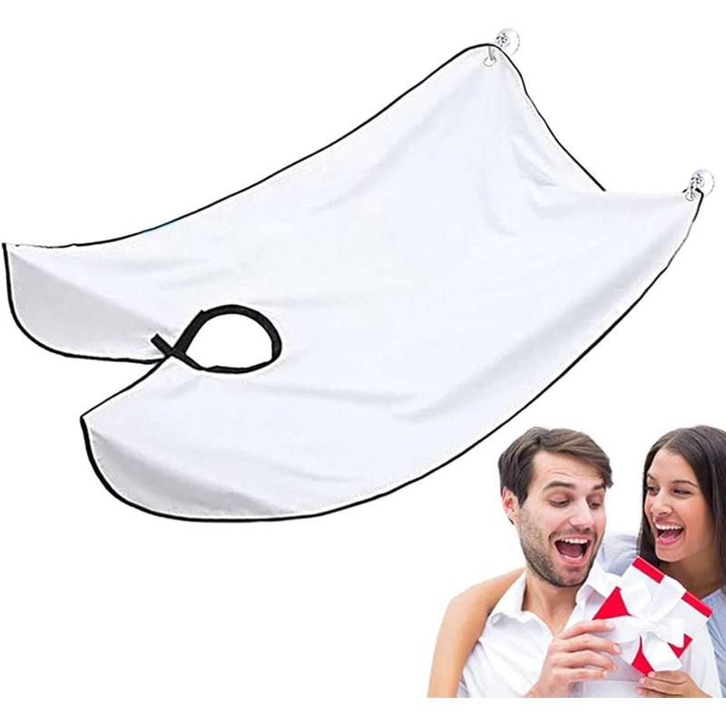 Beard Bib Apron, Beard Catcher with Suction Cups - Best Gifts for Him Men Dad Father Husband, Beard Trimmer Catcher Men's Birthday Gift (White)