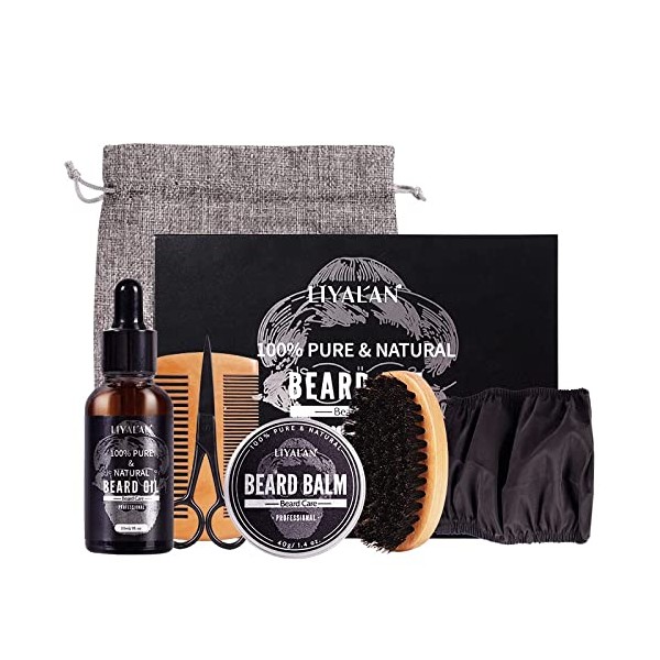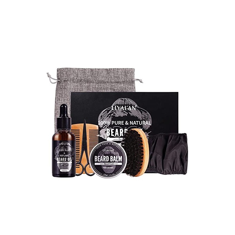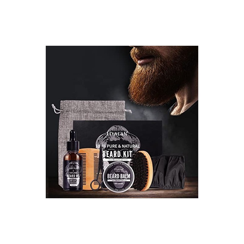 Beard Kit for Men Grooming, 7-Piece Beard Care Kit with Beard Oil, Beard Balm, Beard Brush, Comb, Moustache Scissors, Gifts for Men – by Liyalan
