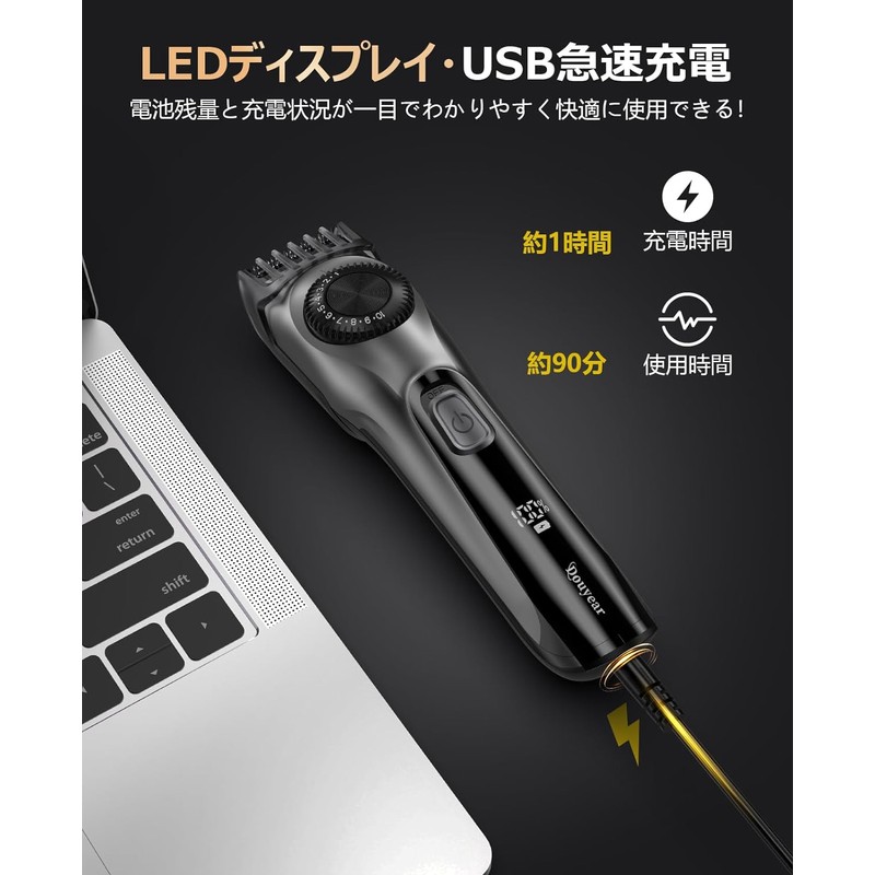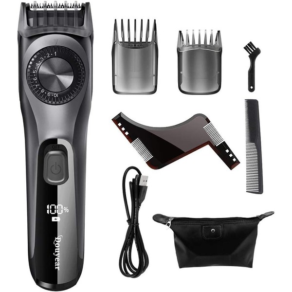 Beard Trimmer 2023 Men's Shaving Trimmer, Adjustable Width 0.02 inch (0.5 mm), 39 Levels of Length Adjustment, Automatic Polishing, USB Rapid Charging, LED Display, 1 Hour, Full