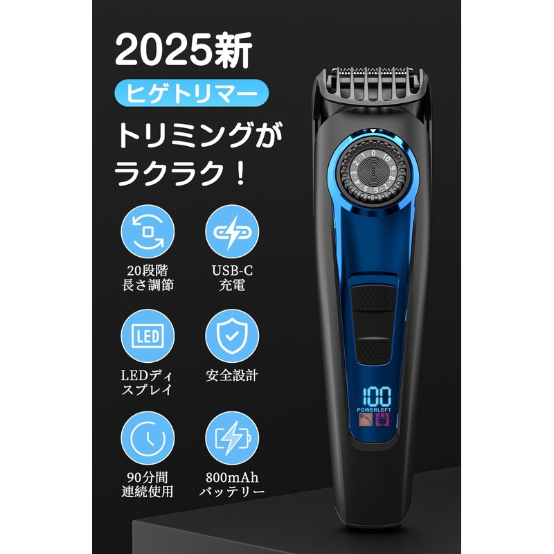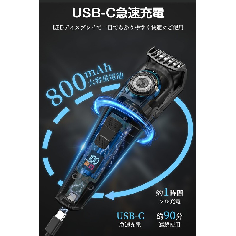 • USB-C Rechargeable & LED Display: USB-C rechargeable beard trimmer can be used continuously for 90 minutes on a full charge. The LED LCD display shows the remaining battery level and charging status, so you can easily see and use it comfortably at a glance. It also comes with a rapid charging function that allows you to shave your beard once with a quick charge of approximately 5 minutes