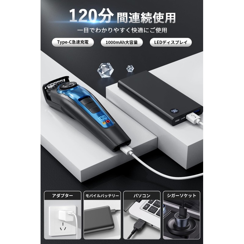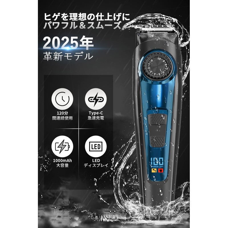 Beard Trimmer, Men's, Type C, Rapid Charging, Length Adjustment, LED Display,...
