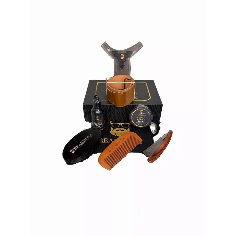 The Beardova Beard Shave Kit. Elevate your grooming routine to an art with precision, style, and luxury. Crafted to cater to the needs of every discerning beard enthusiast, this kit encompasses a curated collection of essential tools and products that guarantee a flawless grooming experience.