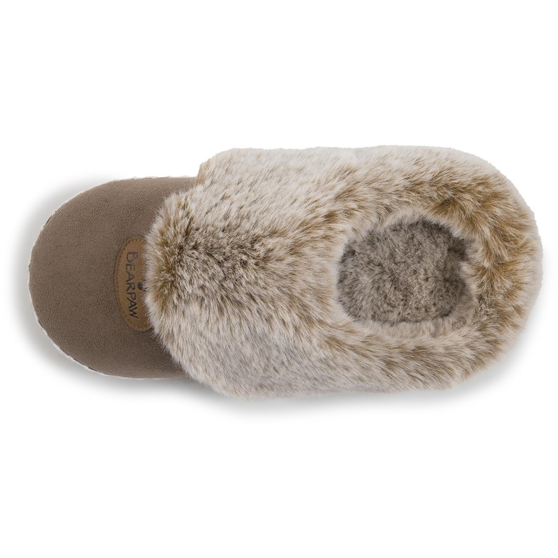 BEARPAW Womens Indoor Microsuede Faux Fur Lined Soft Sole Slipper With Skid R...