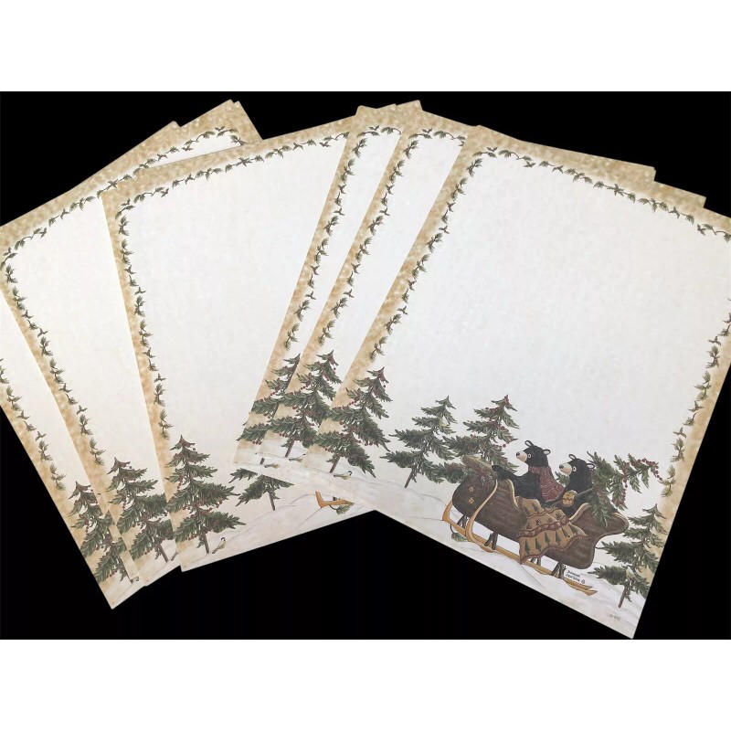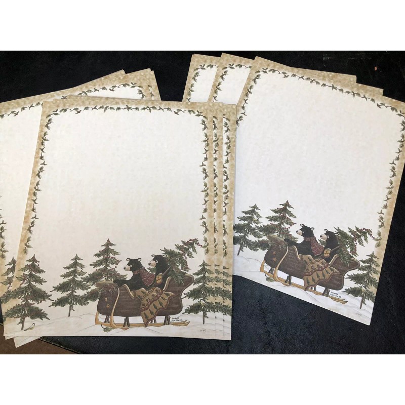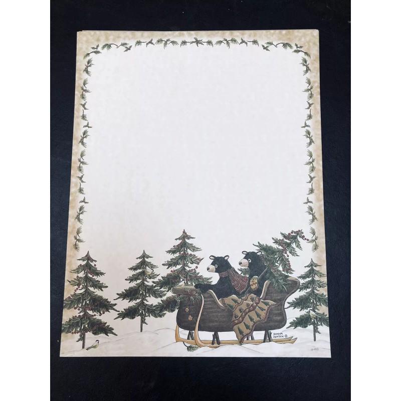 100 sheets of cute holiday computer letterhead stationery, featuring black bears in a sleigh, 8 1/2 by 11” per sheet, made in the USA . Buy more, save more!