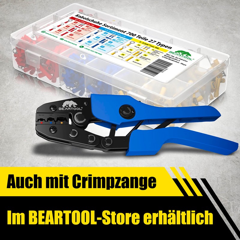 - A real all-rounder – with 700 pieces and 27 different cable lug types, no crimping project remains unfinished. In this professional set, there is always the right and suitable cable lug for everyone.