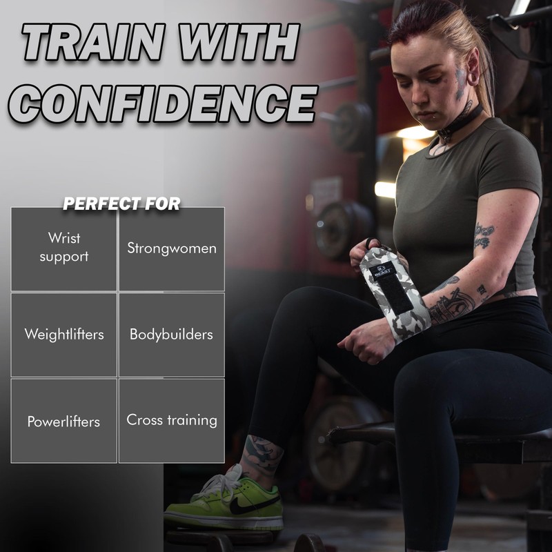 Beast Power Gear Women Wrist Wraps (14" Premium Quality) - Best Wrist Support with Thumb Loop. (Gray Camo)