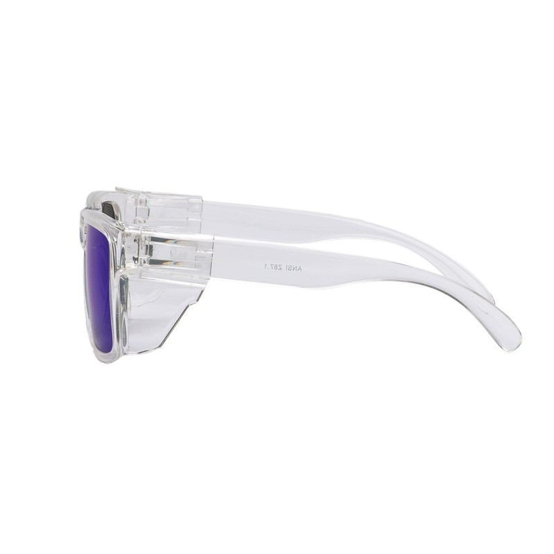 BEASVFE Z87 Polarized Safety Glasses with UV400 Protection & Side Shields – ANSI Work Glasses for Construction, Electricians, Power Tools & Workshop Use(Clear Blue Mirror)
