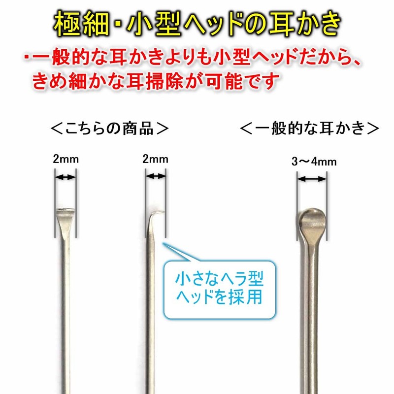 - ✅ステンレス製の耳かきです。先端部は極細形状となっており、軸の太さが約1mm、約2mmのヘラ型のイヤースプーンとなっております。小型ヘッドなので細かな耳掻きが可能です。