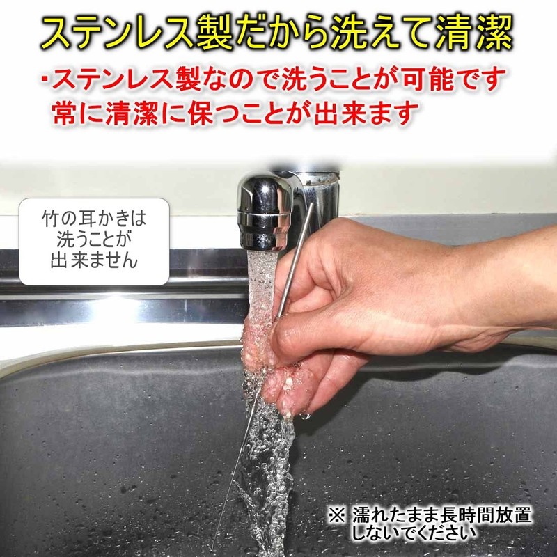 - ✅丈夫で洗えるステンレス製の耳かきです。カトラリーや台所のシンクなどにも使用される金属なので洗うことが可能で常に清潔に保つことが出来る耳掻きです。竹のように折れる心配がないみみかきです。