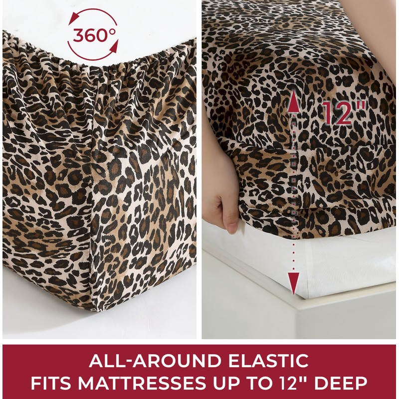 Beatrice Home Fashions Printed Microfiber Sheet Set, Soft Comfortable Easy Care, Includes 1 Fitted Sheet with 12" Deep Pockets, 1 Flat Sheet, Pillowcase, King, Zara Leopard