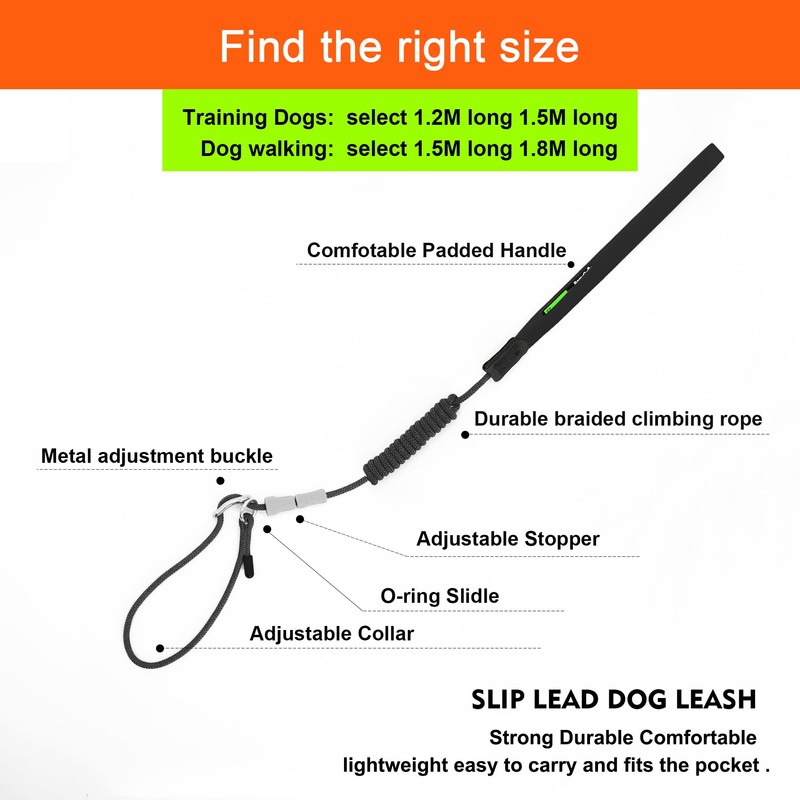 - Simple and easy to use :the slip lead dog leash and collar in one design, adjustable to fit any neck size,convenient design for walking and training.