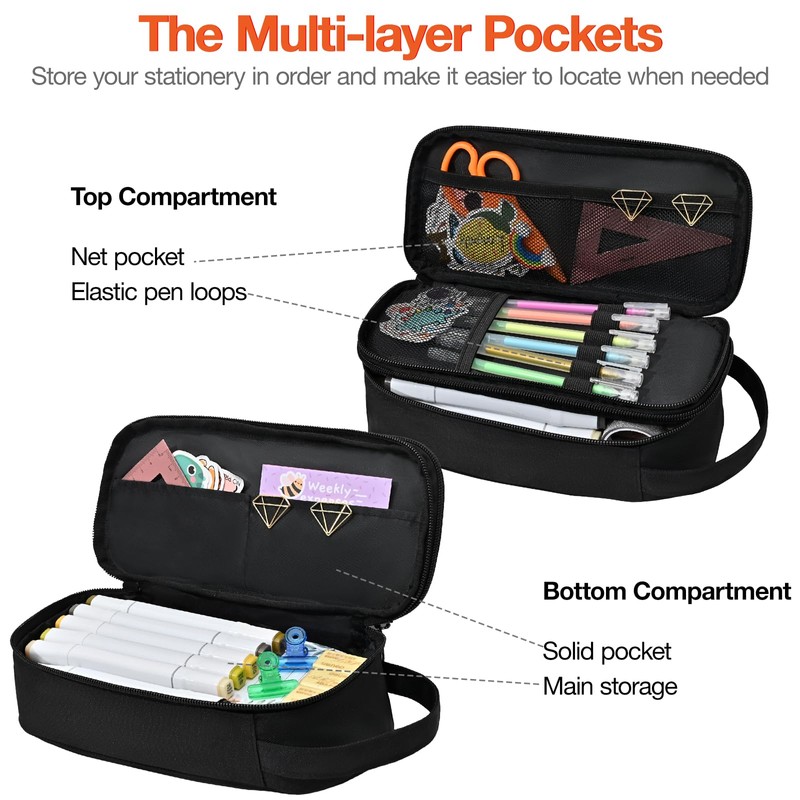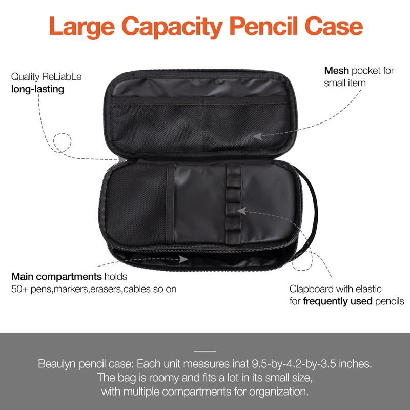 Spacious & Organized: Store 50+ pens, USB drives, earbuds, and small tools in 2 compartments, mesh pockets, and elastic loops.