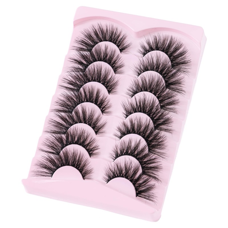 Beaunitti False Eyelashes Faux Mink Lashes Slender and Fluffy Cat-eye look 18mm Cross shaped Extended tail Strip Lashes 7 pairs per pack