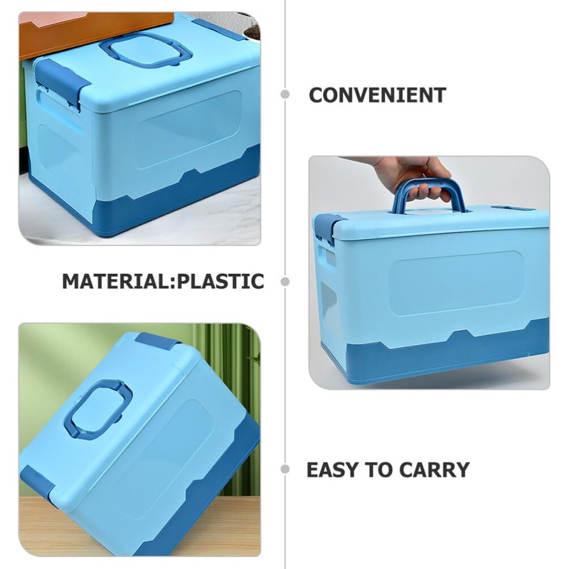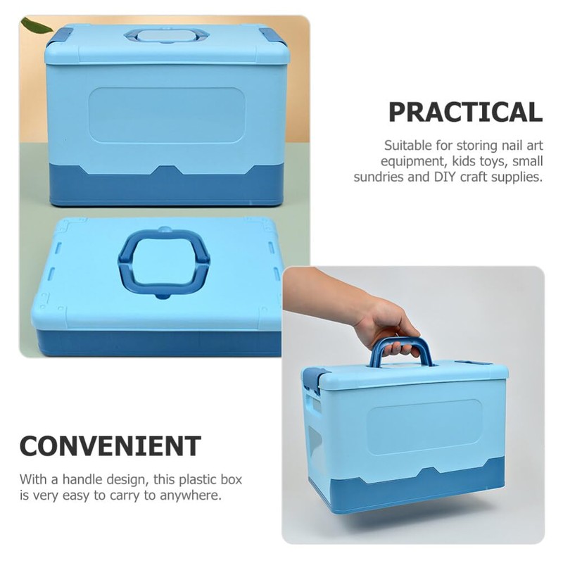 Beaupretty Plastic Storage Box Folding Carry Box Tool Organizer Portable Handled Case Lockable Container Sundries Organizer for Arts Crafts Cosmetic Sewing Washi Tape Blue