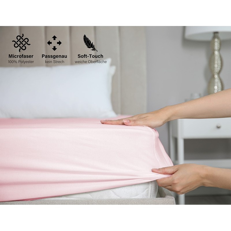 BEAUTEX Microfibre Fitted Sheet, Lightweight and Soft Premium Quality (160 x 200 x 30 cm, Pink)