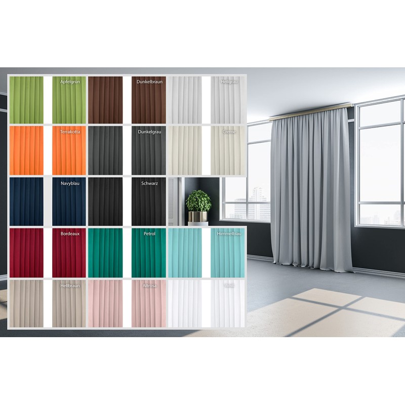 The highly darkening plain-coloured curtain stands out with its attractive design, clean modern lines and convenient features. The curtain is not only great for windows but can also become a stylish interior design accent design in living rooms, bedrooms and hallways. It serves as a decorative piece as well as a practical blackout curtain. The high-quality material can reduce noise penetration in the room by up to 10%. Depending on your needs, you can choose one, two or more curtain panels for your windows, balcony doors or patio doors. You can shorten the curtains individually to room height and design wishes.