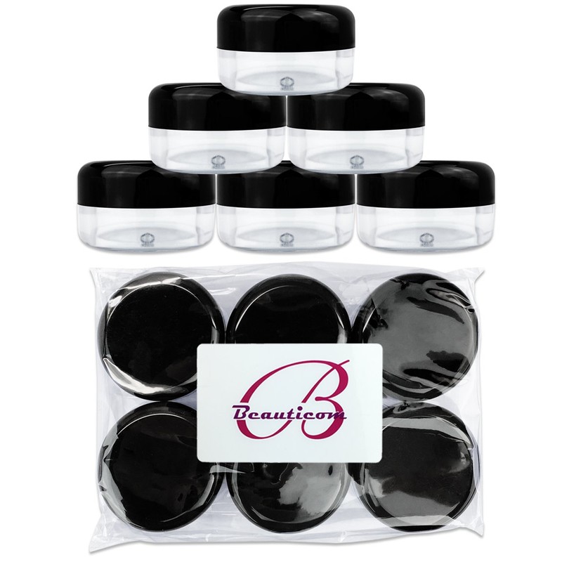 Beauticom 15 gram/15ml Empty Clear Small Round Travel Container Jars with Lids for Make Up Powders, Eyeshadow Pigments, Lotions, Creams, Lip Balm, Lip Gloss, Samples (6 Pieces, Black Lid)