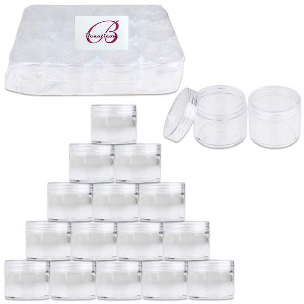 Beauticom High-Grade Quality 2 oz./ 60 Grams/ 60 ML (Quantity: 36 Packs) Thick Wall Crystal Clear Plastic Jars Container with CLEAR Flat Top Lids for Cosmetic, Lip Balm, Lip Gloss, Creams, Lotions, Liquids, Glitter, Charms, Nails
