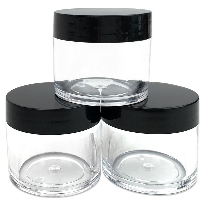 Beauticom 6 Piece 1 oz. USA Acrylic Round Clear Jars with Flat Top Lids for Creams, Lotions, Make Up, Cosmetics, Samples, Herbs, Ointments (6 Pieces Jars + Lids, BLACK)