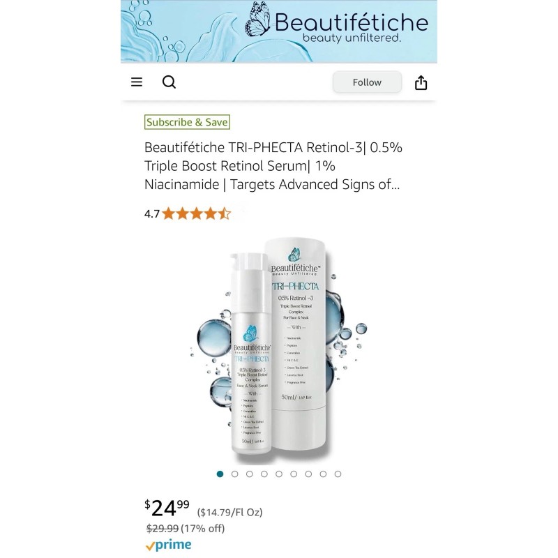 Beautifétiche TRI-PHECTA Triple Boost Retinol-3+ 1% Niacinamide.